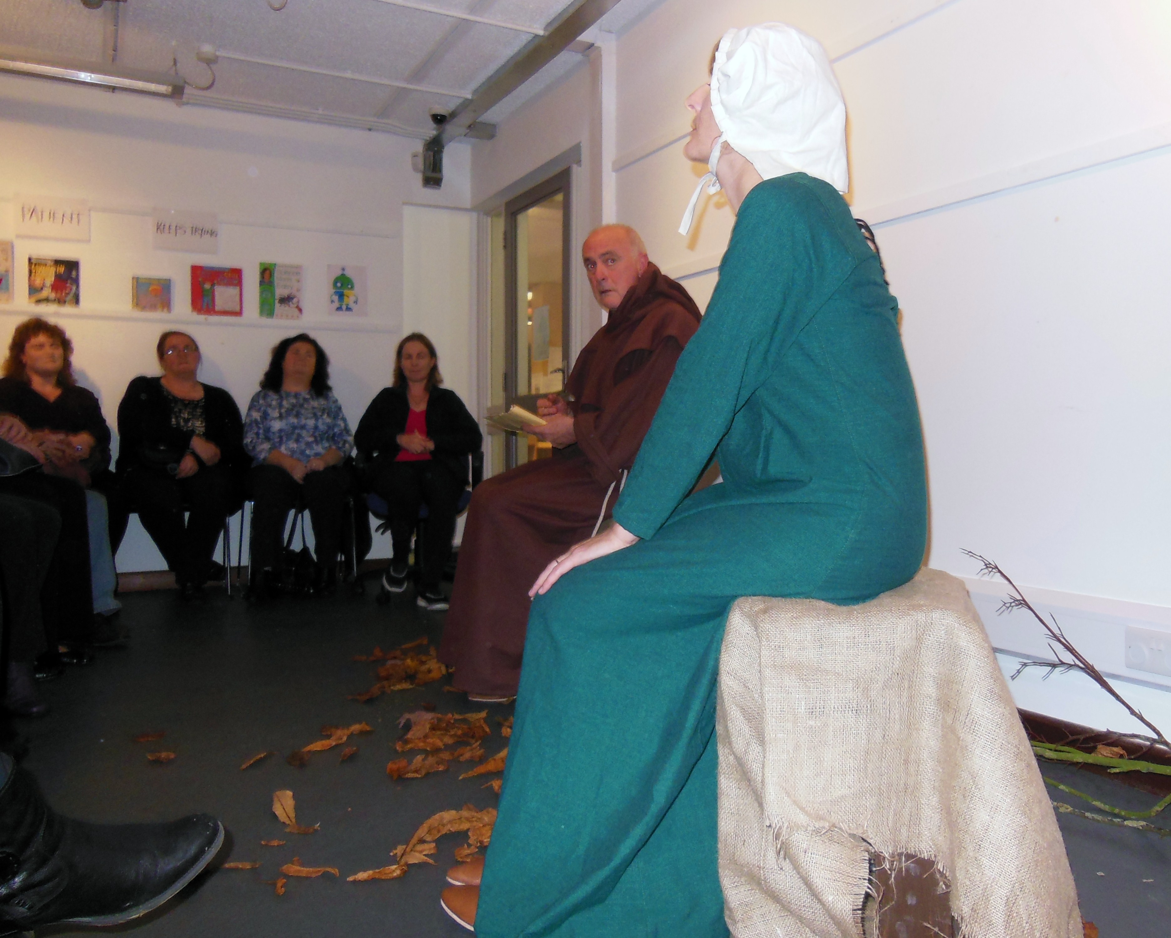Carrick on Suir library became a theatre, for one night only, on Wednesday 11th November, where they staged a play called ‘A Winter’s Dress’ by up and coming Kilkenny Playwright Angela Keogh. This is a story of a dress maker and a scribe. It’s a story of life, love and laughter in the face of the Black Death where a dress maker and a scribe meet on their way to Kilkenny in 1348 and share their stories to shorten the journey. One of them is carrying more than a gift to the city.