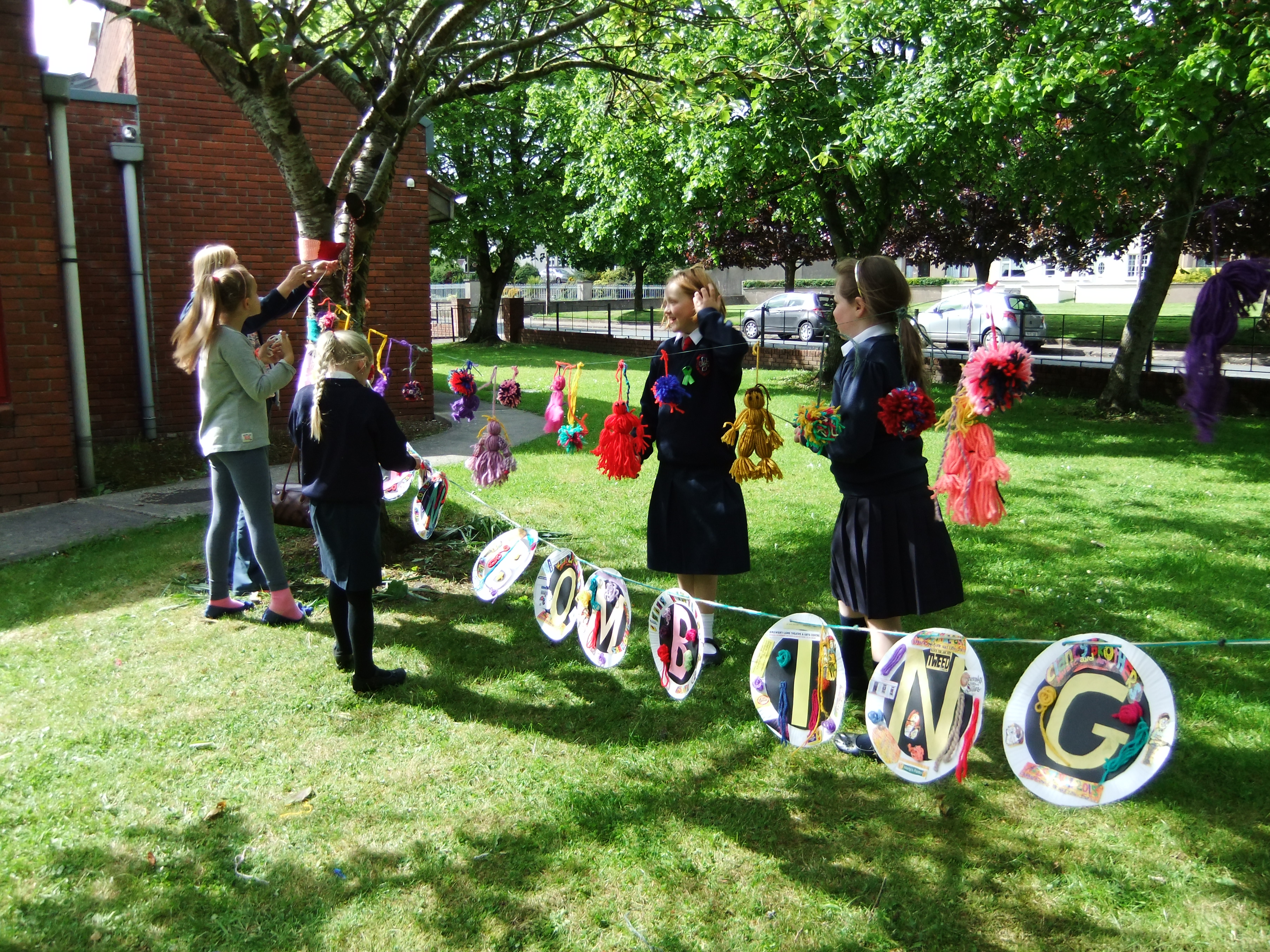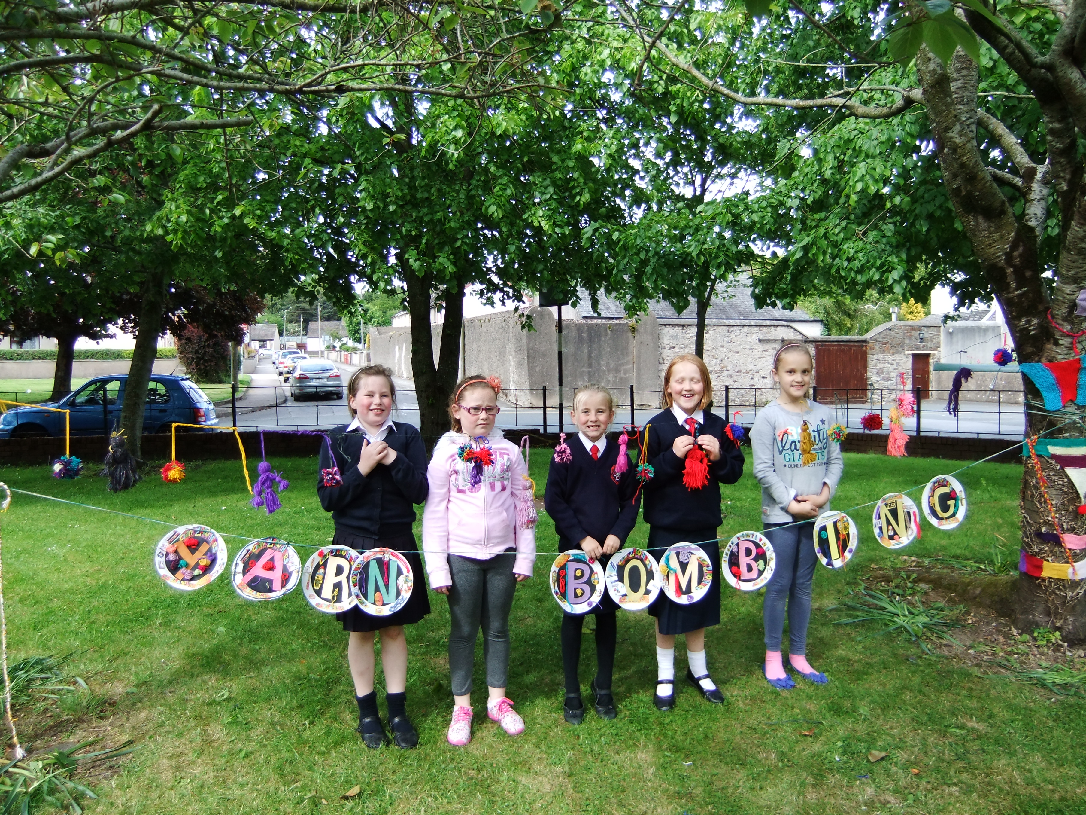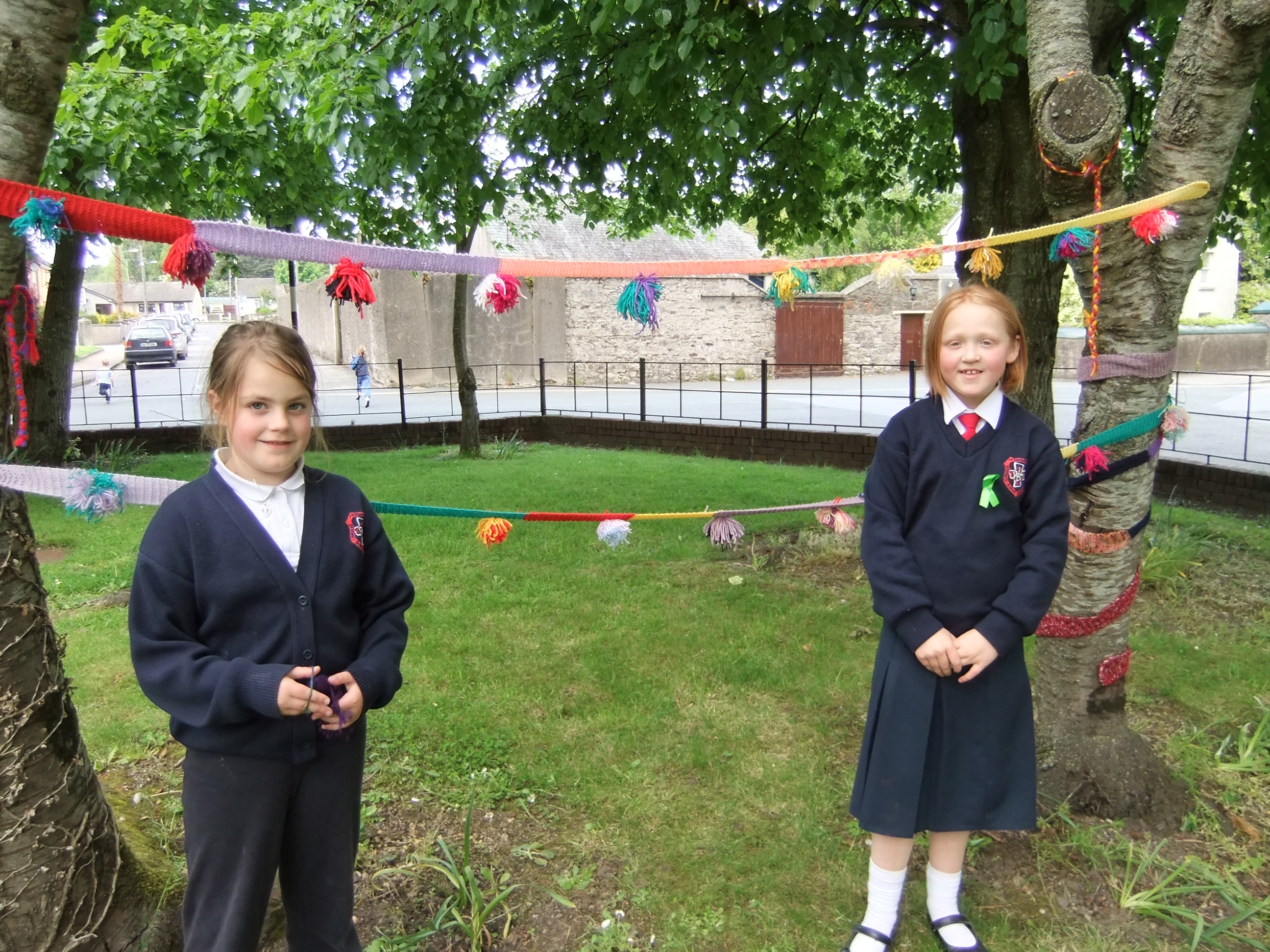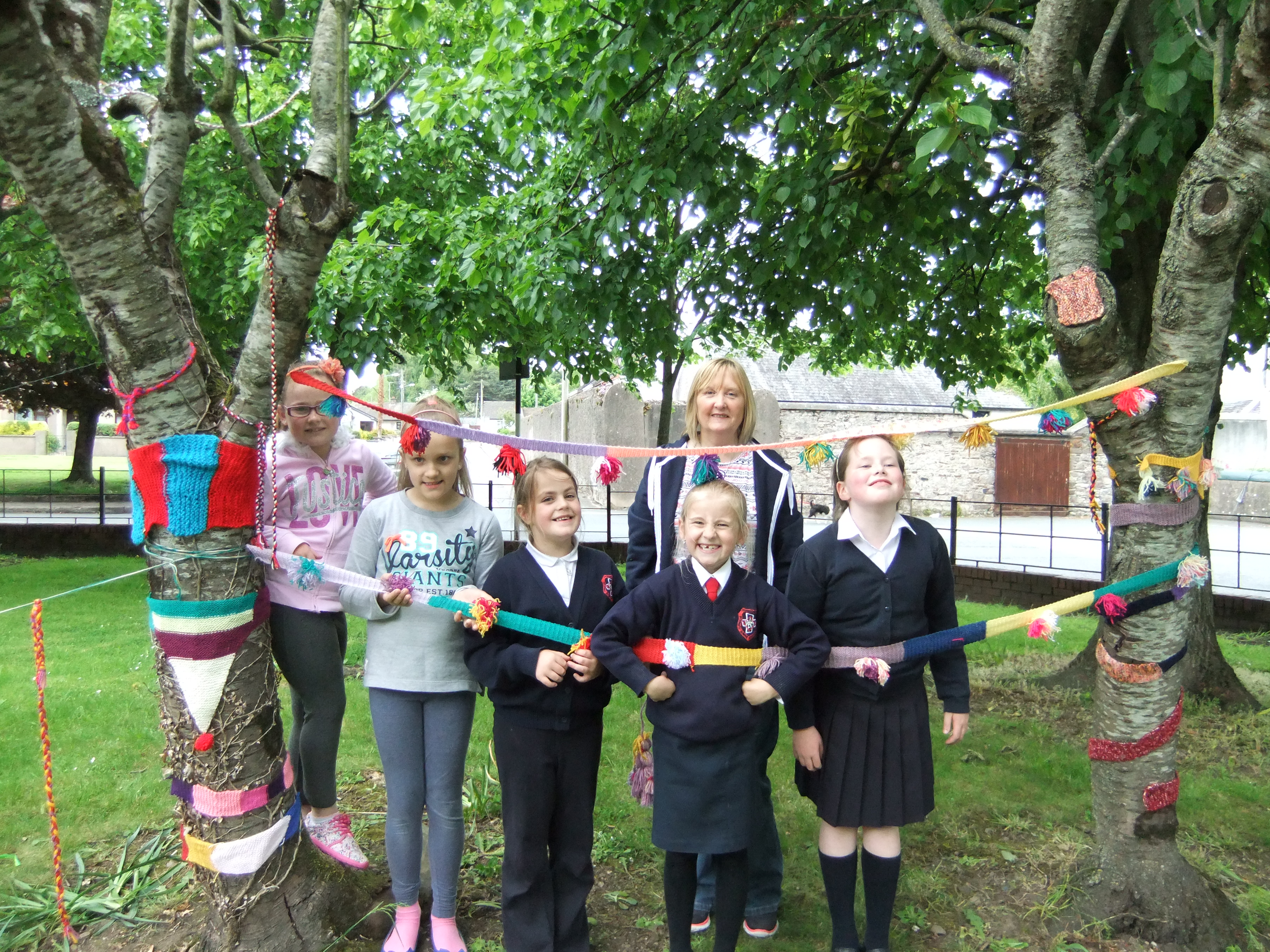 Carrick library grounds has been Yarn Bombed! Believe it or not a meagre ball of yarn can create a field of dreams. This collaboration, brainchild of local woman Ena Bradshaw and librarian Carol Delany, was incorporated into the Artist’s Trail of the Clancy Festival. Ena worked tirelessly with local children to create this very unique and colourful instillation. Well done to all concerned. Carrick library contact number is 051 640591.