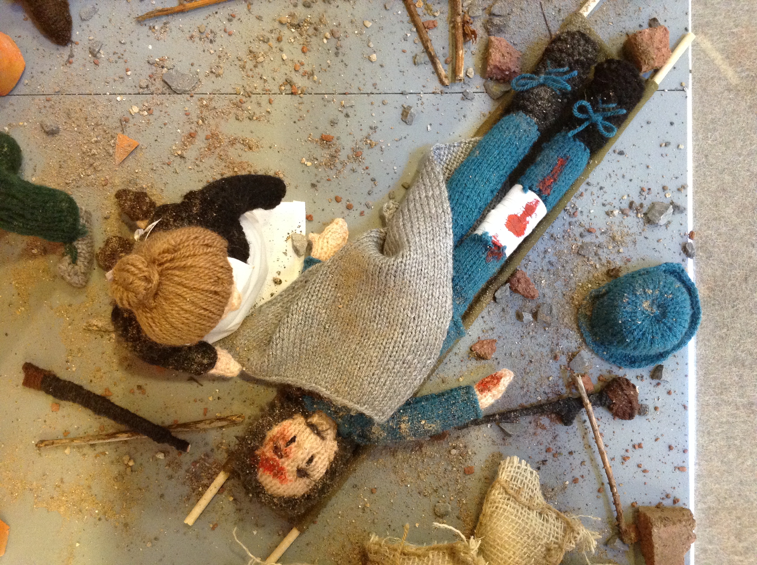 Clonmel Craft Circle present their interpretation of Walter Paget’s painting ‘ Birth of the Irish Republic’. The tableau is made up of pieces knitted by members of the group and depicts a scene from the GPO based on the painting by Paget.