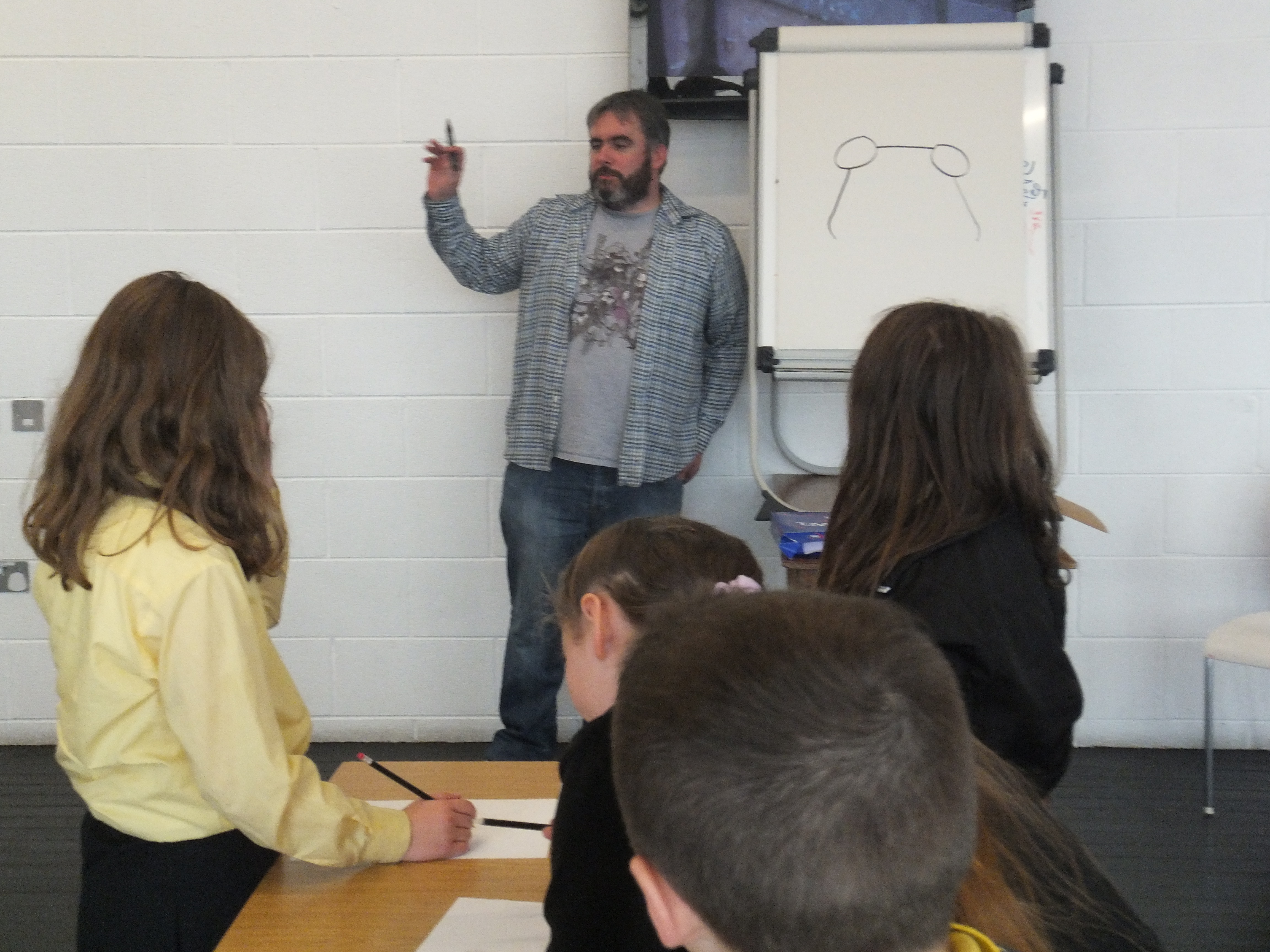 Aidan Courtney, Irish freelance cartoonist and writer hosted a comic workshop in Thurles library with fifth class children from Holy Cross national school. This event was part of the 2015 Children’s Book Festival and was very entertaining for the students.