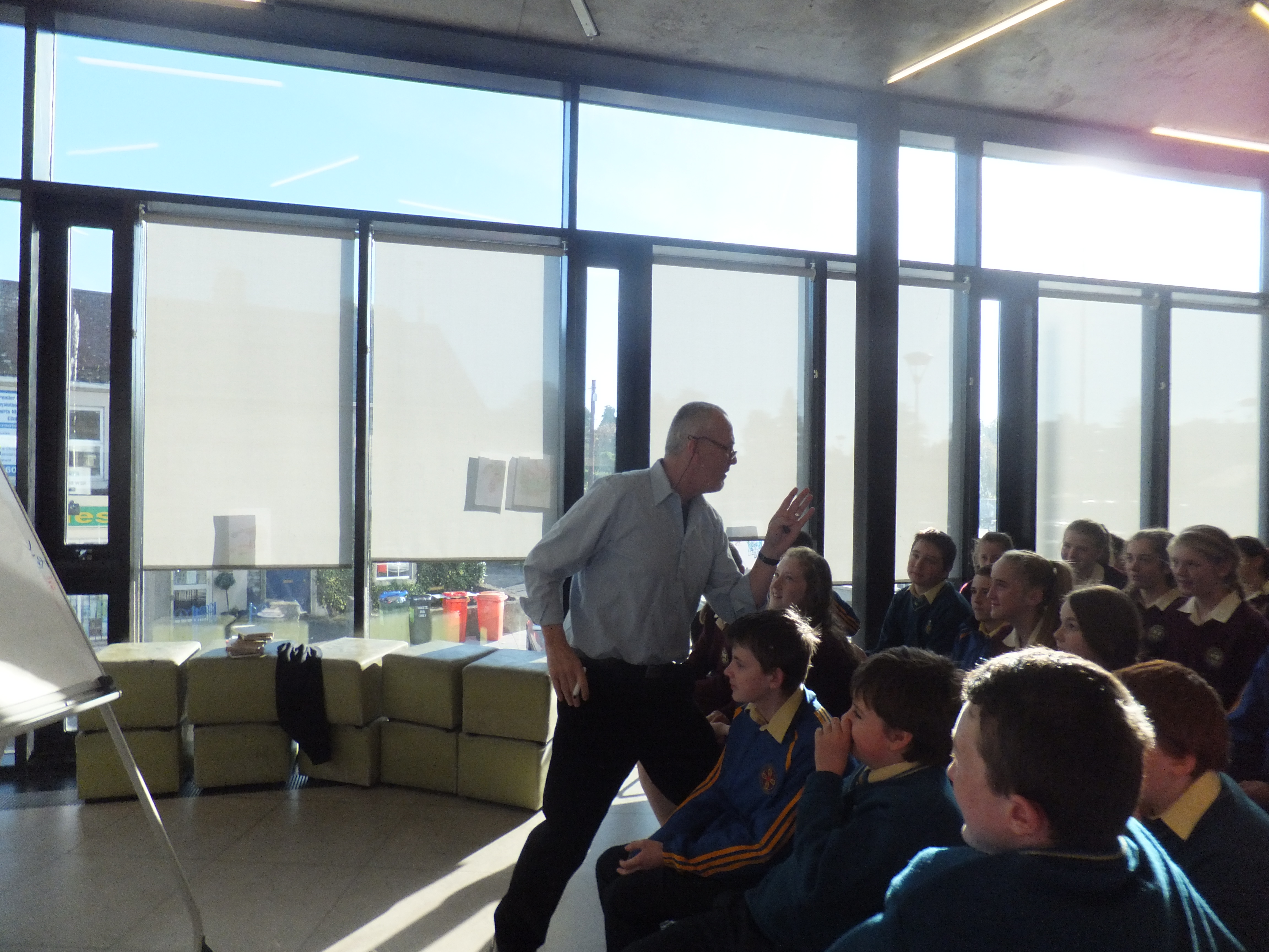First year pupils from the CBS and The Presentation Convent Thurles were highly entertained by Ré in Thurles library. This event is part of the 2015 Children’s Book Festival. The students were full of praise for him afterwards and thoroughly enjoyed every lively minute.