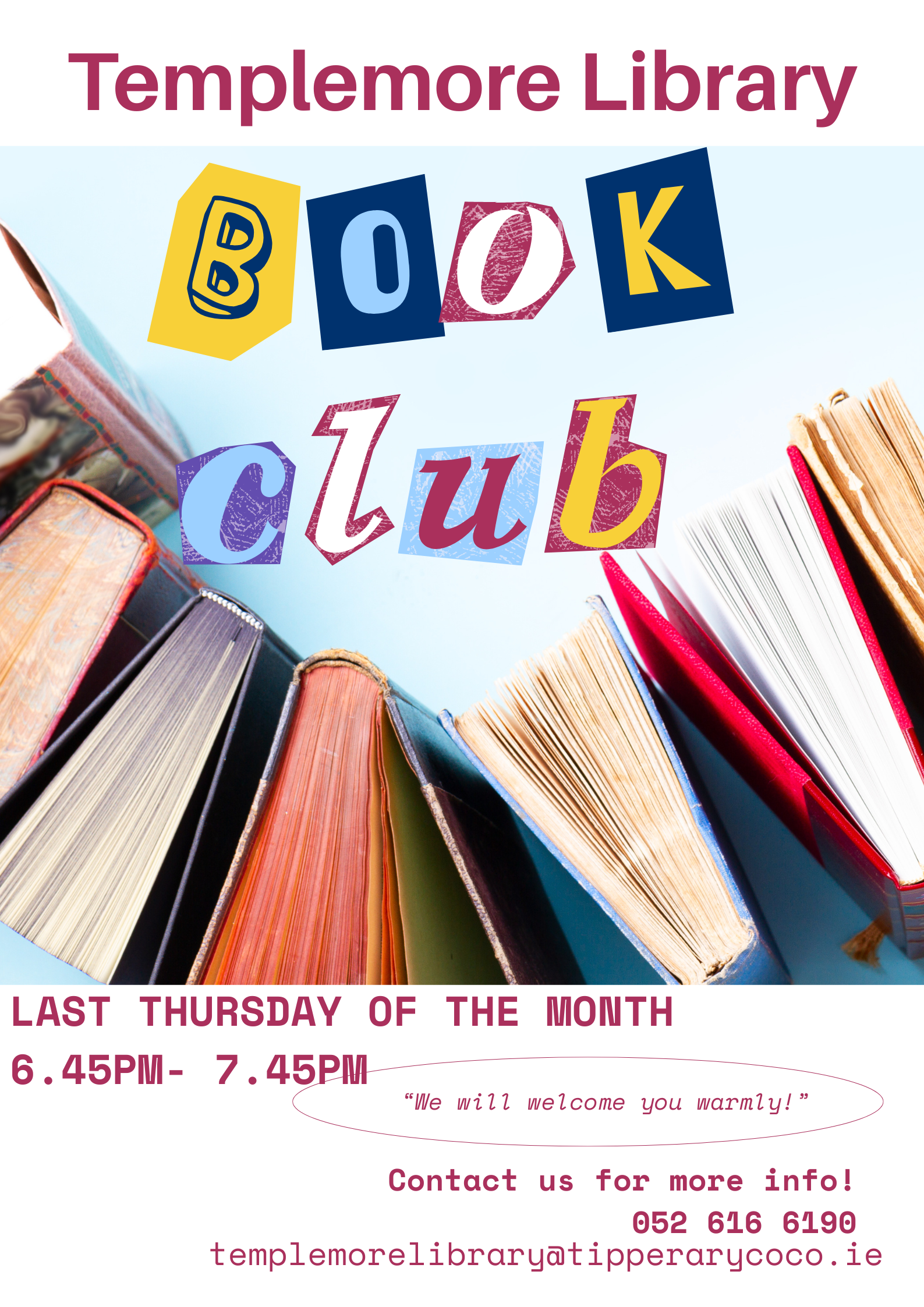 Templemore Library Templemore Library and Enterprise Centre Main Street, Templemore, Co. Tipperary.Templemore Library Adult Book Club meet the last Thursday of the month from 6.45pm - 7.45pm. New members are very welcome.