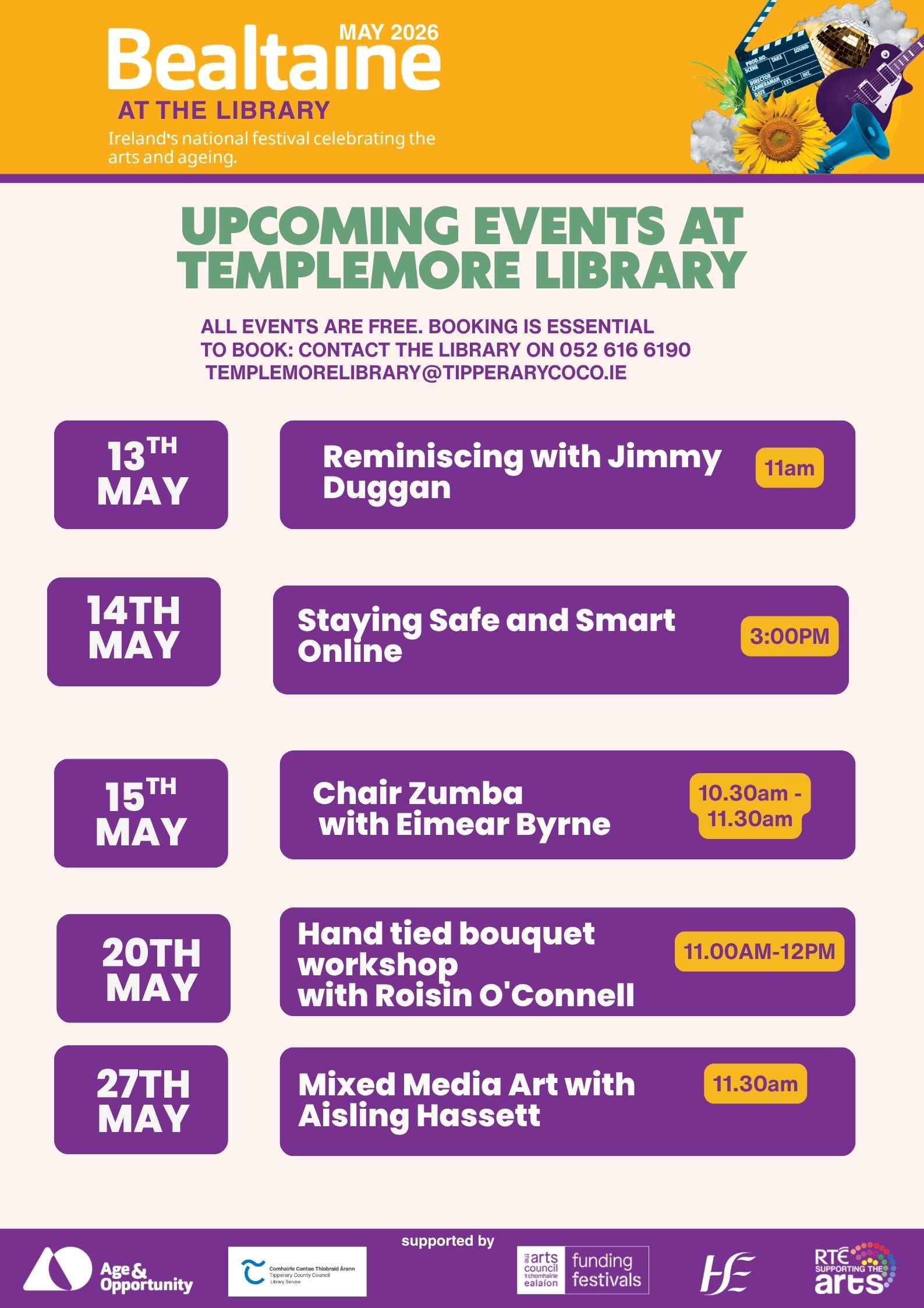To book your place contact 052 616 6190 or email templemorelibrary@tipperarycoco.ie