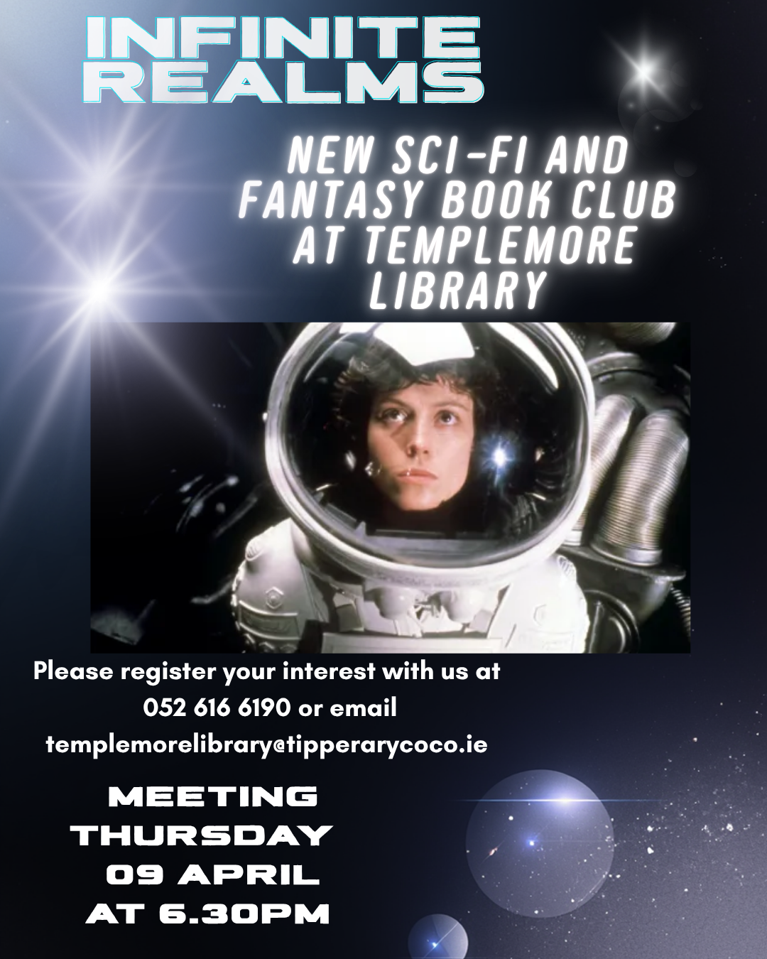 Templemore Library is hosting a new book club for adults exploring all things Sci-Fi and Fantasy. If you are interested in sharing your love of these genres or are looking to explore new reads register your interest with us at 052 616 6190 or email us at templemorelibrary@tipperarycoco.ie.