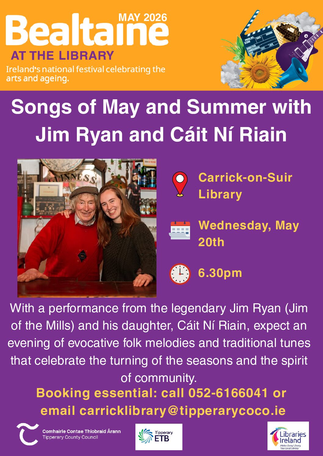 Join Suzanne Buttimer for an interactive, fun singing session designed to engage participants and evoke happy memories. Booking essential: call 052-6166041 or email carricklibrary@tipperarycoco.ie