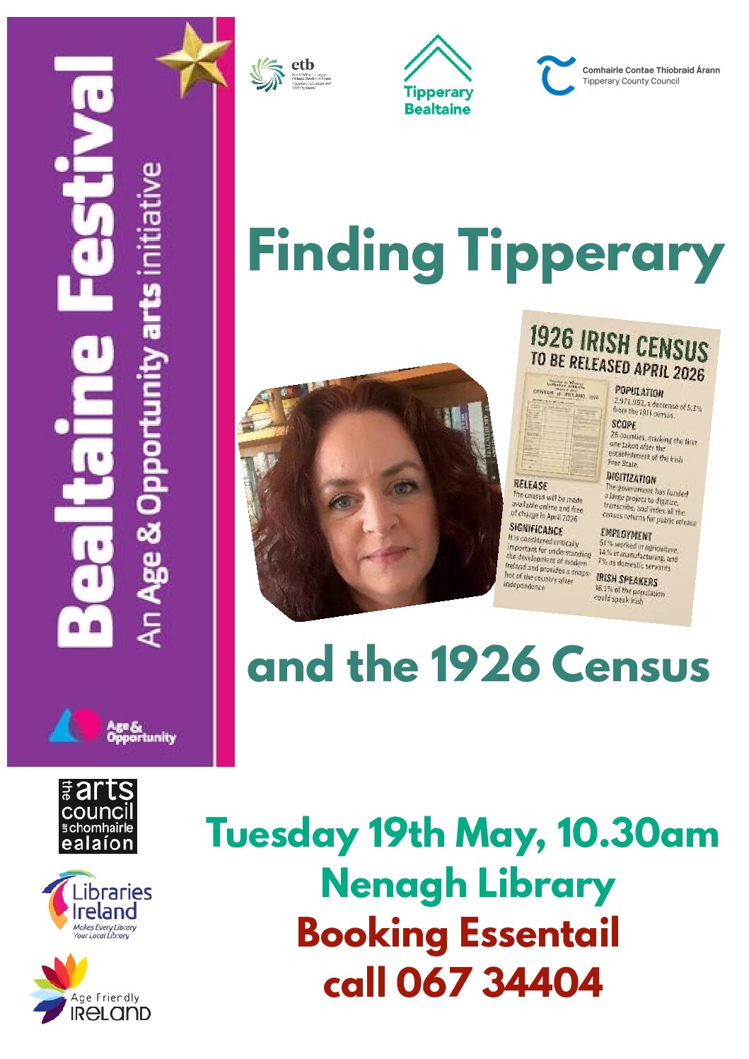 Bealtaine Event: Finding Tipperary and the 1926 Census Nenagh LibraryBooking essential Phone: 067 34404 Discover local history through records and stories at this engaging workshop exploring the 1926 Census in Tipperary. […]