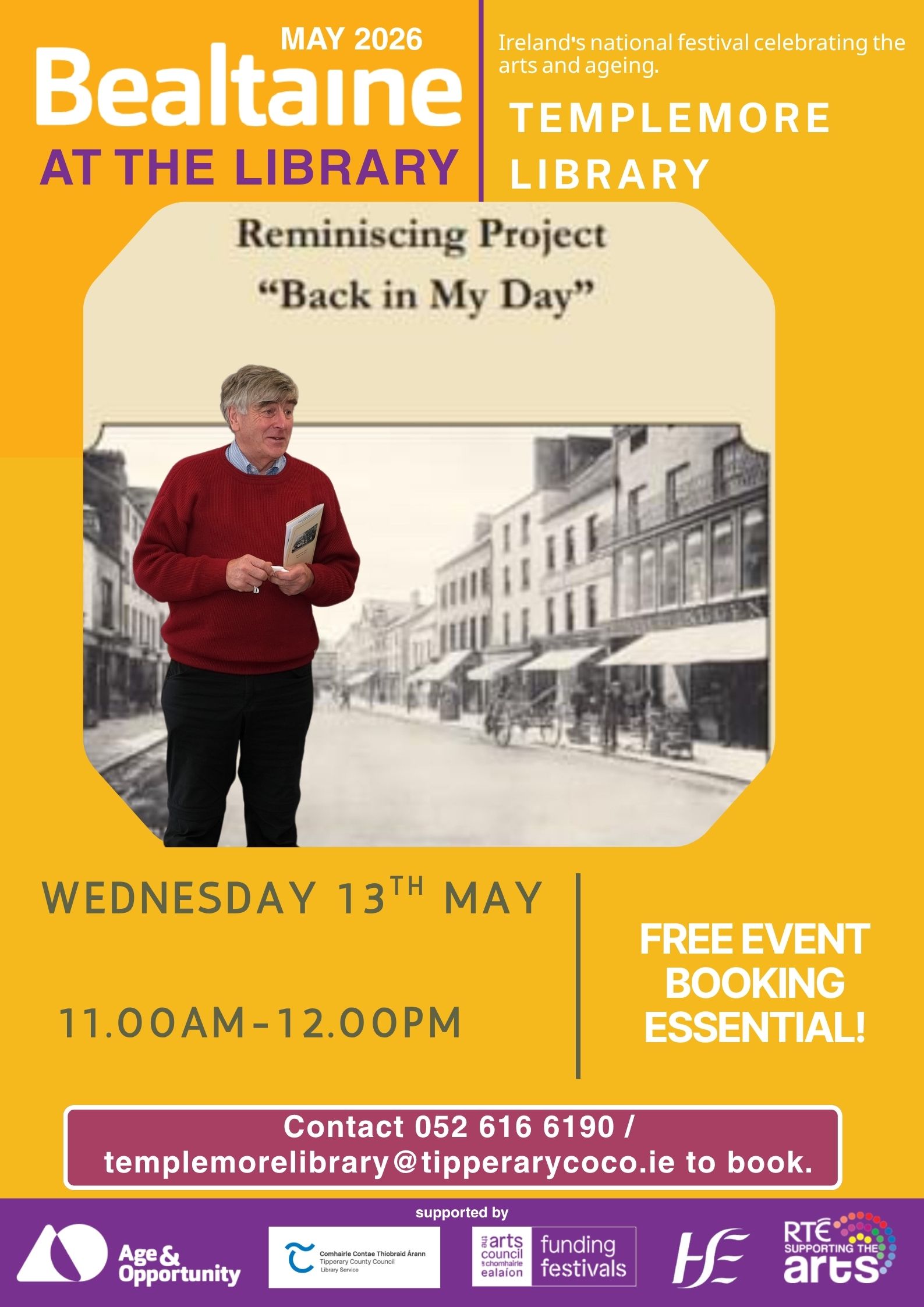 Bealtaine 2026 at Templemore Library, Reminiscing with Jimmy Duggan. Wednesday May 13th 11am Jimmy is a former teacher with a strong interest in history and heritage, and this relaxed session […]