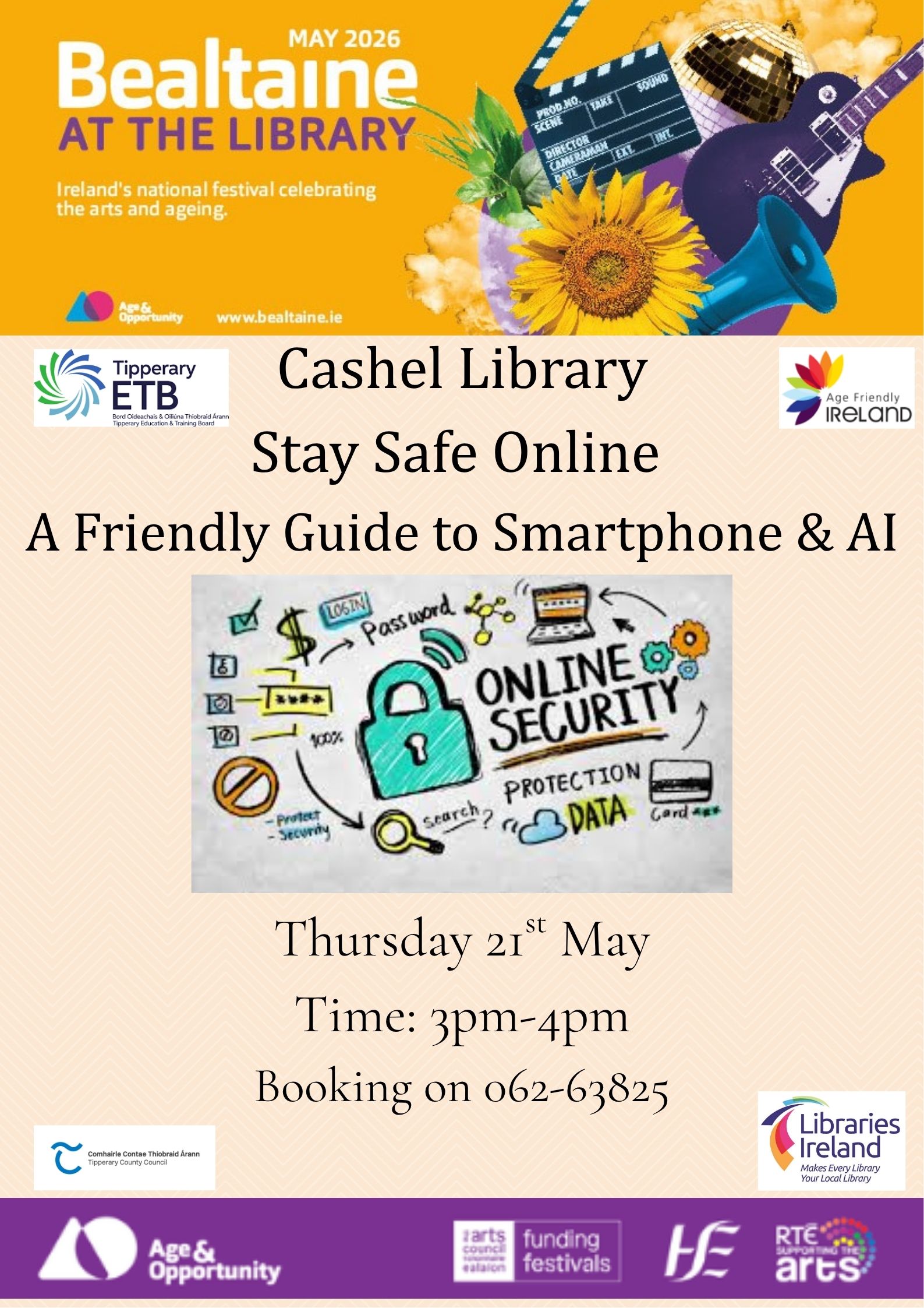 A guide to smartphones and IT security workshop on mobile phones. Cashel Library Thursday 21st May @3pm Booking on 062-63825