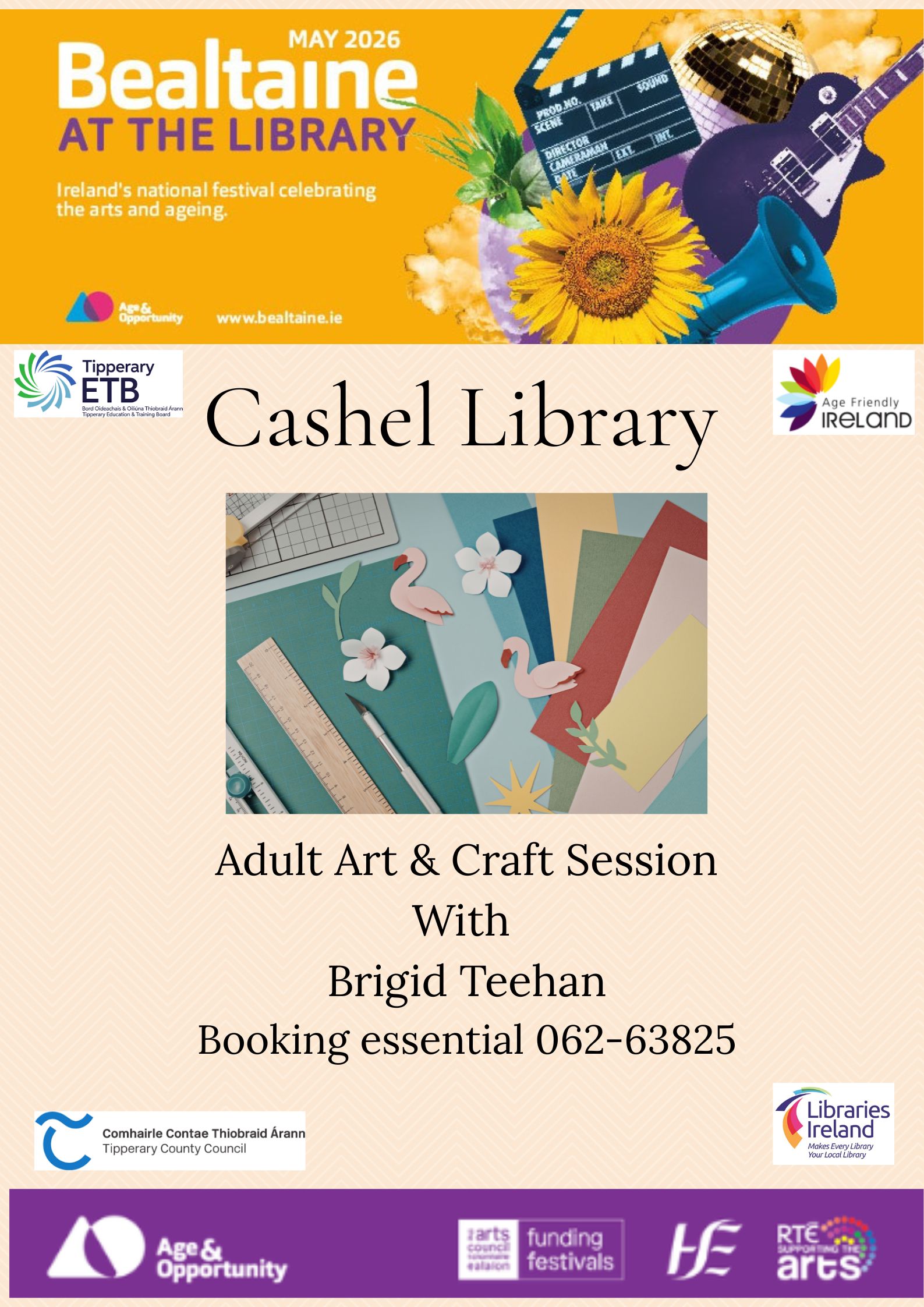 Join the Cashel Craft Circle every Wednesday from 10am-12pm for their social gathering. Bring along your own project to work, share ideas, patterns and enjoy a chat and cuppa with others. No need to book just come along. Cashel library 062-63825