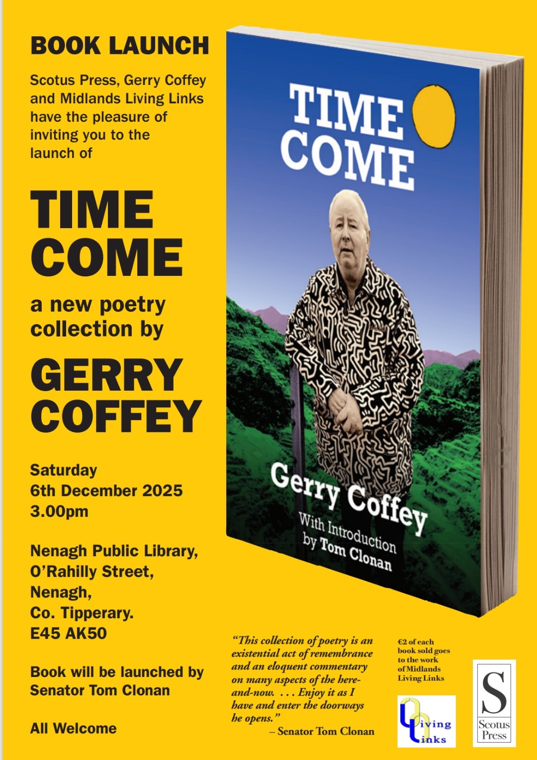 Nenagh Library is delighted to host the launch of "Time Come," a new collection of poetry by local author Gerry Coffey. The collection will be officially launched by Senator Tom Clonan, a prominent figure in Irish public life. Gerry Coffey’s poetry collection, "Time Come," offers readers a reflective and insightful exploration of life, time, and […]
