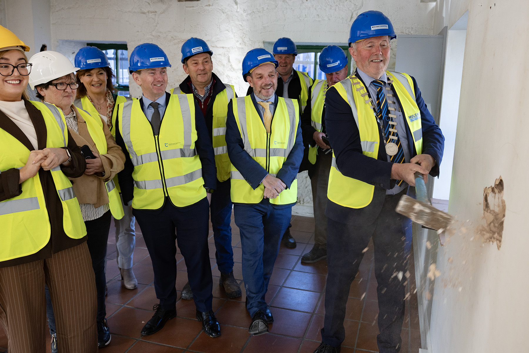 Minister of State for Community Development, Charities and Rural Transport, Jerry Buttimer TD visited Cahir this week to officially start the construction works on the new Cahir Library at the Craft Granary. Minister Buttimer ceremonially launched the project by wielding a sledgehammer to break through the first internal wall, symbolising the start of the alteration works for the new Library.
