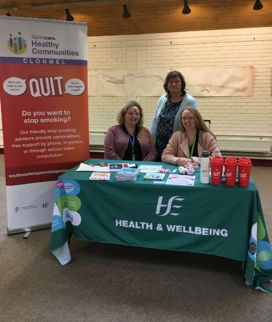 Pictured are Improvement Officers Aoife Dunphy and Geraldine Moloney, along with Sandra English, Healthy Ireland Officer for Clonmel Library – all supporting our community with information, resources, and encouragement to help people begin their smoke‑free journey.