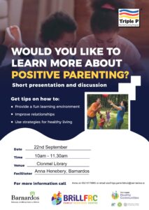 Barnardos and Clonmel Library is delighted to announce that it will deliver the Triple P Parenting Seminar series at Clonmel Library this autumn. These free 90 minutes Seminars are suitable for parents of children between the ages of 2-12 years…